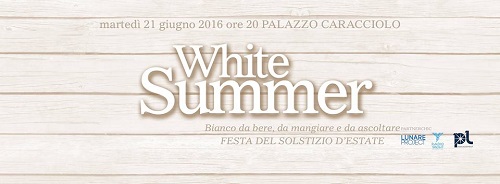 Domani, martedì 21 giugno, a partire dalle ore 20:00, negli eleganti spazi dello storico Palazzo Caracciolo, in via Carbonara 112, va in scena durante il solstizio d'estate la quinta edizione di White Summer, l’evento, che dà il benvenuto alla bella stagione. Un appuntamento multisensoriale dove il bianco è protagonista assoluto: bianco da bere, da mangiare e ma da ascoltare.